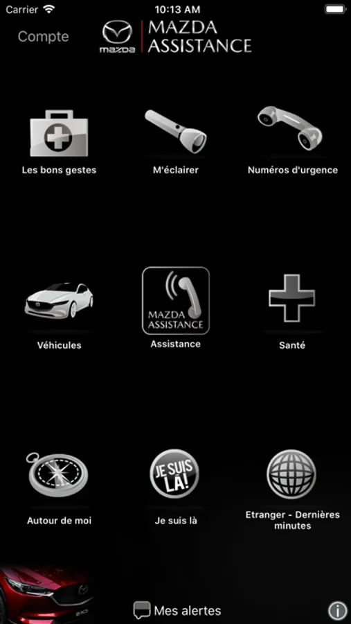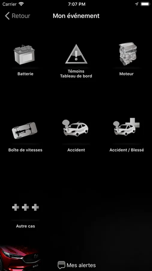 L’application Mazda Assistance vous permet d’accéder 7j/7, 24h/24* :