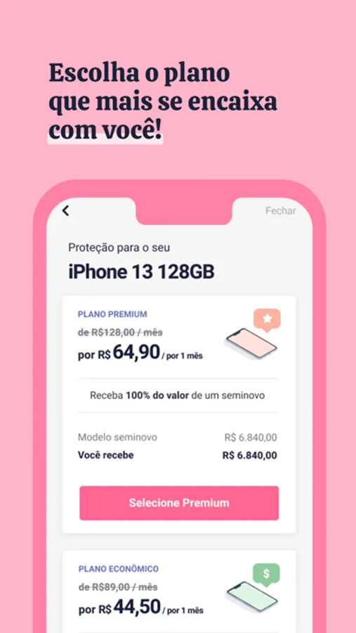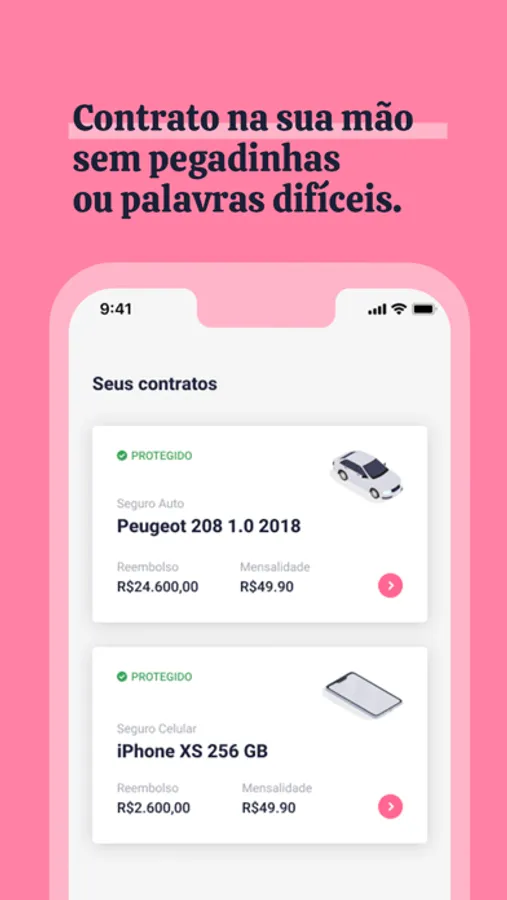 Resolva tudo pelo app: faça cotação, vistoria, contratação e até pedido de reembolso! Faça seu seguro com apenas alguns cliques e tudo isso sem papelada ou letras miúdas.