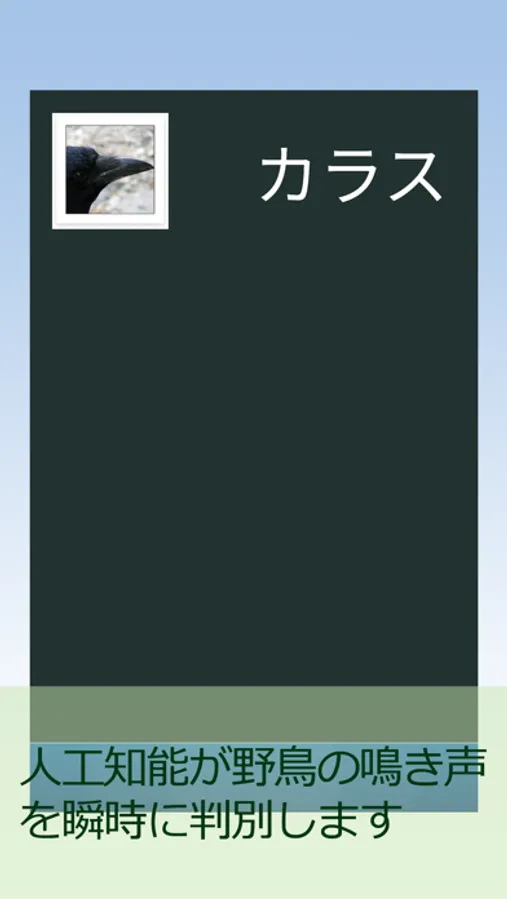 鳴き声から最も近いと判断される鳥の名前をリアルタイムに表示します。