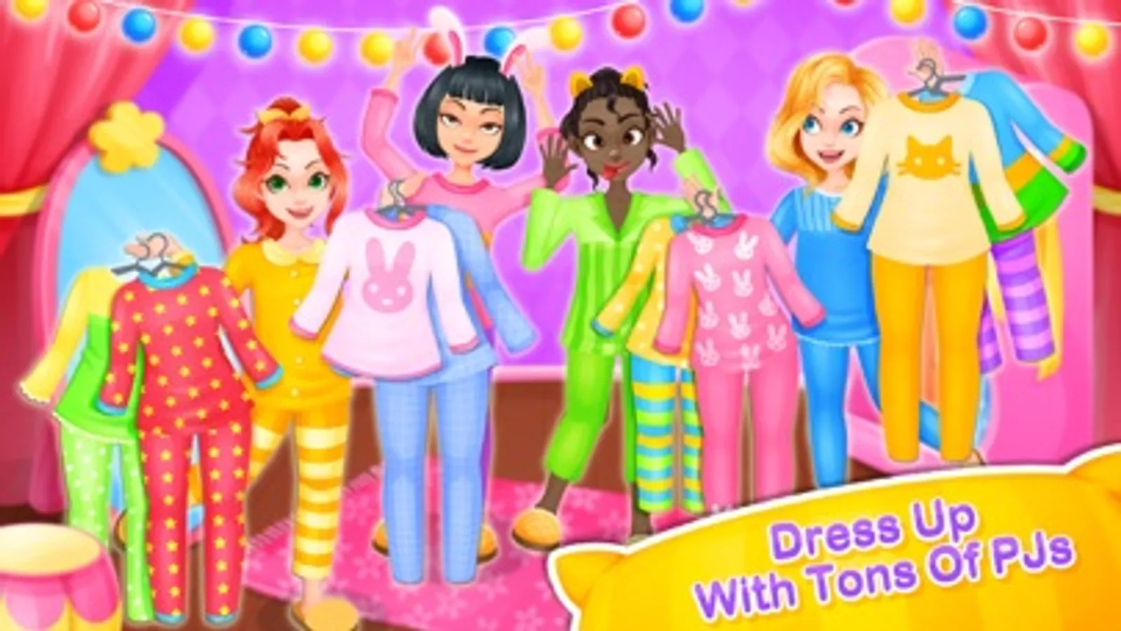 ~~> Plan the party of your dreams! Decorate invitations, design your own pillows, dress your cute PJs and enjoy the sweet desserts and so much more!