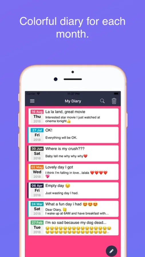 This diary app can easily fit the purpose of a writing down your memoir or chronicle. Keep a log or logbook to record history. Do like famous Anne Frank, make daily records, document life in your own daybook.
