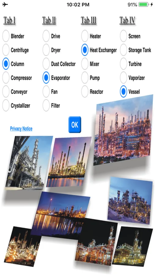 • All the major process equipment, i.e. Blenders, Centrifuges, Compressors, Columns, Conveyors, Crystallizers, Drives for Pumps and Compressors, Dryers, Dust Collectors, Evaporators, Fans, Filters, Heaters, Heat Exchangers, Mixers, Turbines, Pumps, Reactors, Screens, Storage Tanks, Vaporizers, and Vessels, are included.