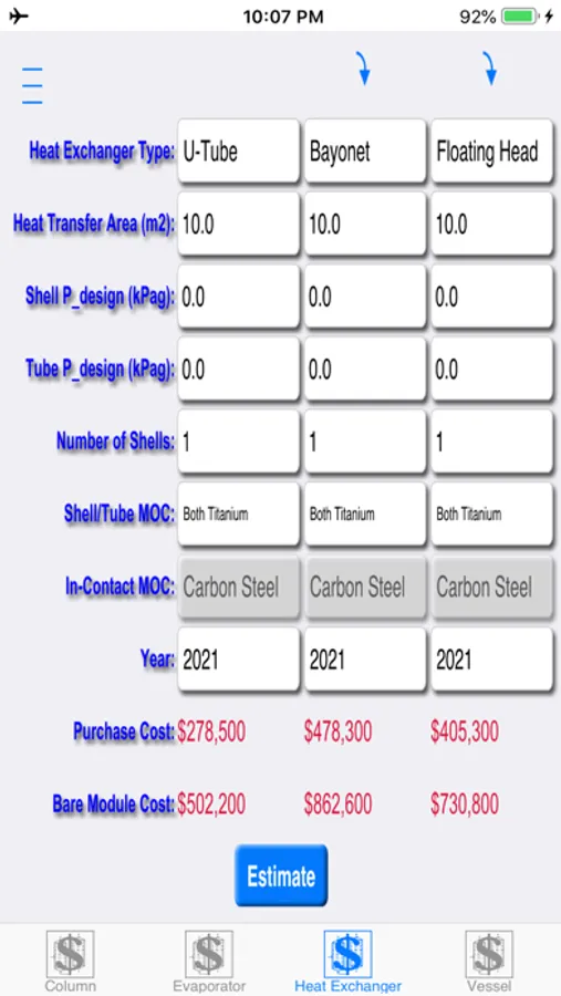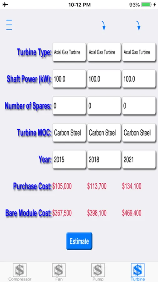 • The calculation core is adopted from Turton et al. (2018) who reviewed and updated the modular technique and cost data proposed by Guthrie (1974) and Ulrich (1984).