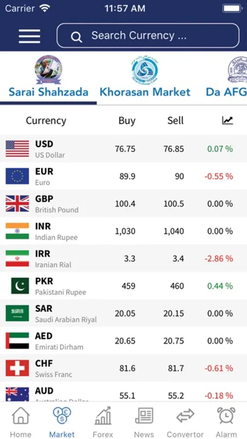 SARAFI.AF is the first and only currency authority that provides daily live currency rates all over Afghanistan, from the Sarai-e-Shahzada market which is the biggest market under the (Unity Of Money Exchangers) of Kabul province, & Khorasan Market which is under the (Unity Of Money Exchangers) of Herat province that is the biggest money exchanger market of Herat province and many other sources and bank including Central Bank.