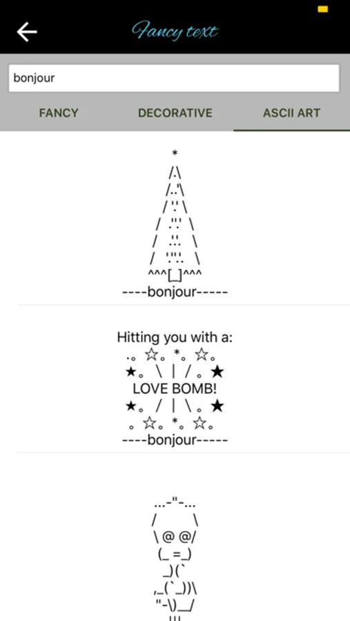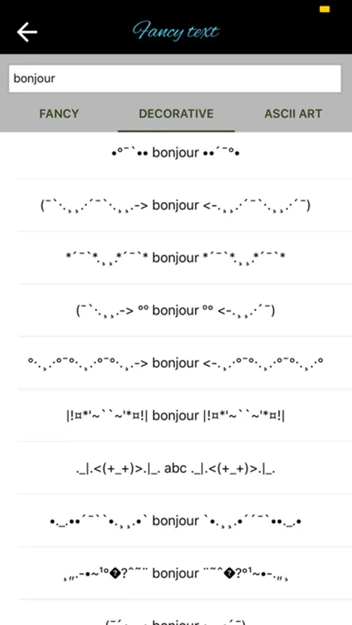 Cool fancy text Generator is a handy tool that helps convert normal text to different stylish cool text, thus it helps create text with cool symbol and fancy font. Basically, it is a word art generator, letter generator, font generator... to generate cool letters, fancy message, text symbols, cool symbols, fancy writing,..