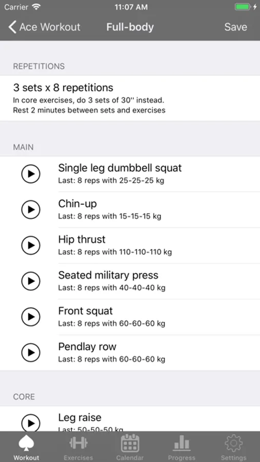 With Ace Workout you will work every day different muscle regions and at different intensities, boosting variation, motivation and maximizing gains. It also has great features to help you train like never before: