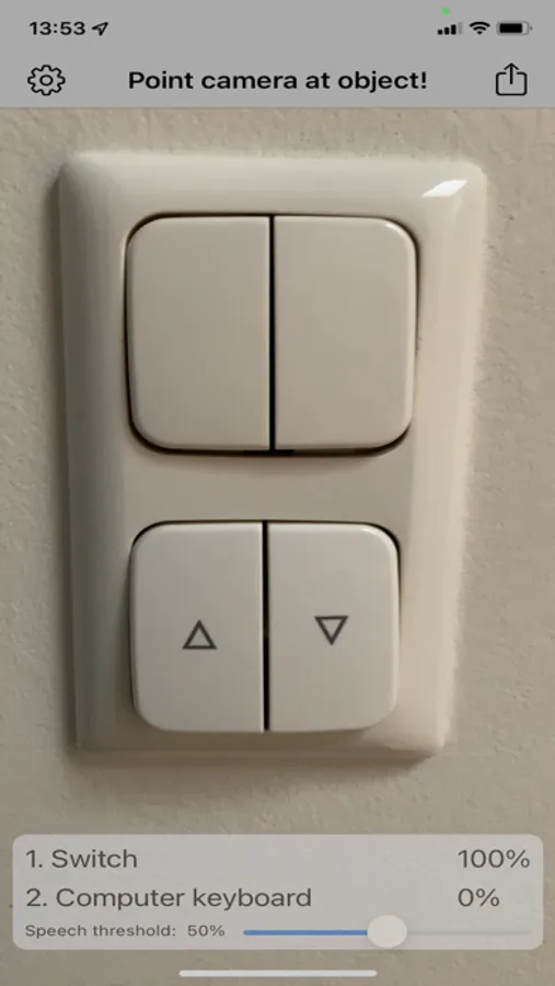 After the first start you are in object detection mode. Point your camera to objects and the detection starts automatically. In the top left you can tap on the settings icon.