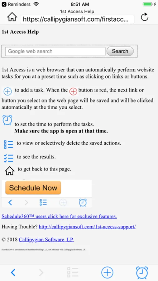 1st Access is a web browser that can automatically perform website tasks for you at a preset time such as clicking on links or buttons.