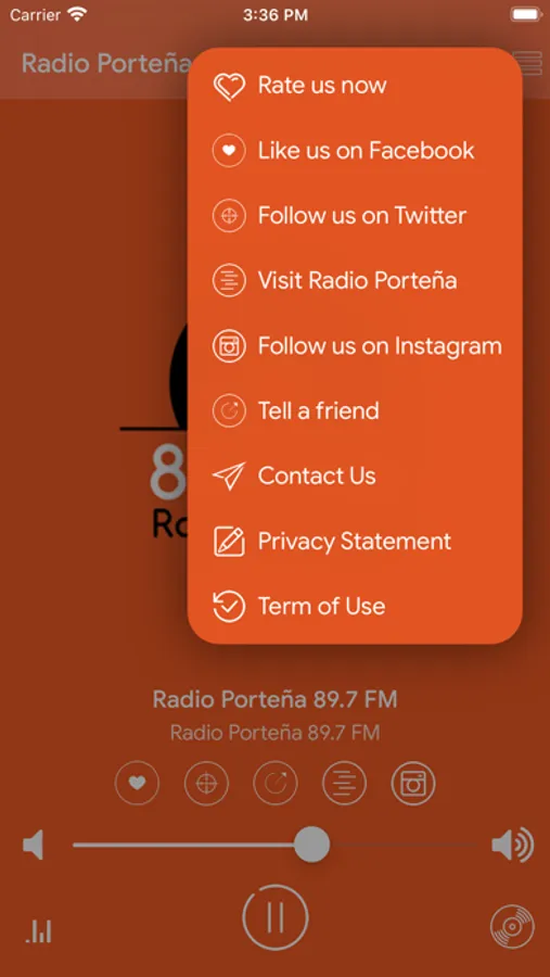 ● Comparta su estación favorita a través de Facebook.