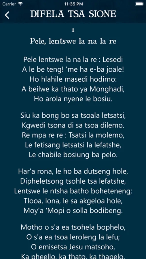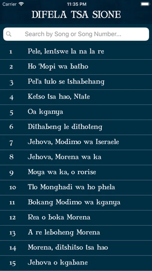 Difela Tsa Sione is a Digital Hymn Book which contains 455 hymns of Sotho Language. Lets Praise The Lord Jesus Christ with this well designed Digital Book. This is to simplify our lives and moving away from hard copies.