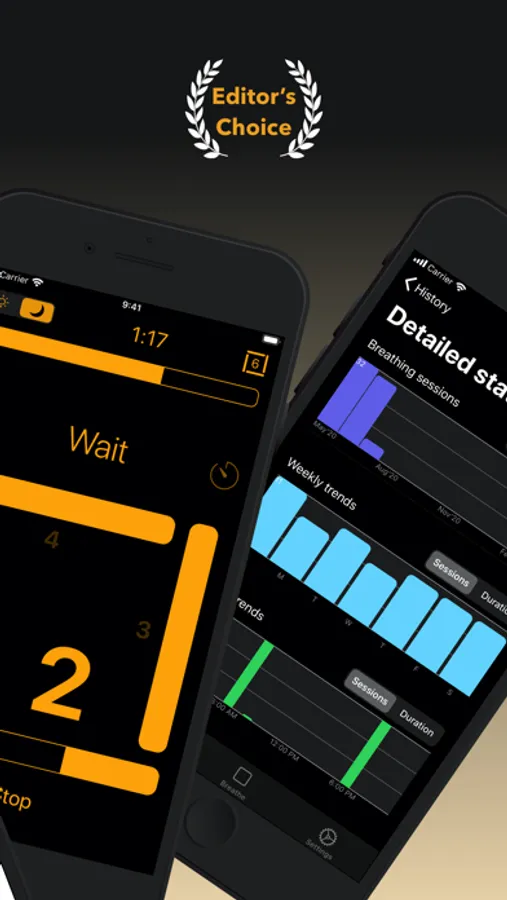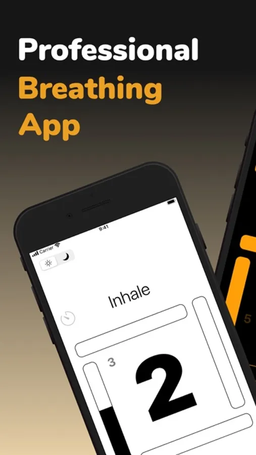 - program your breathing session with a convenient timer by setting either a number of breathing cycles or an overall duration
