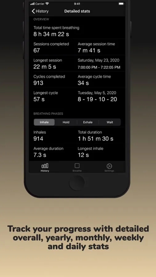 - set haptic response for every second of your breathing session (not supported on devices prior to iPhone 6s)