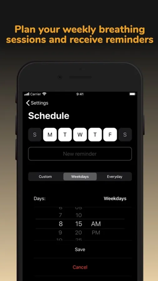 - plan your weekly breathing sessions and set reminders