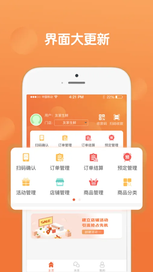 友家社区商户端,为商户用户提供店铺管理,商品管理, 商品分类管理,接单配送等功能