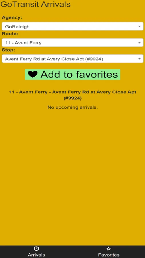 Lightweight bus tracker for GoTransit (serving Raleigh, Durham, Research Triangle, Cary and Chapel Hill). Simply select an agency, route and stop to see the next arrivals.