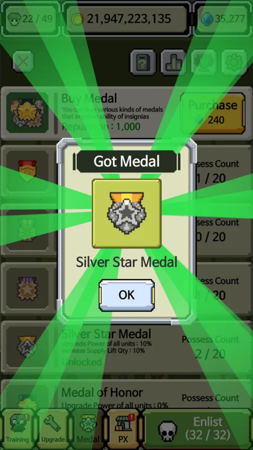 - Collect all the insignia from private to general!