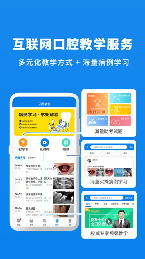 教学服务:理论学习,视频教学与病例学习等提供全方位教学平台。