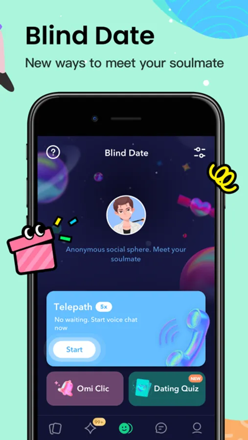 There are more ways to get matches other than swiping. Omi Blind Date helps you to meet like-minded people in creative ways. Choose an avatar and get started! You could unlock your matches' real pictures if you both send 5 messages.