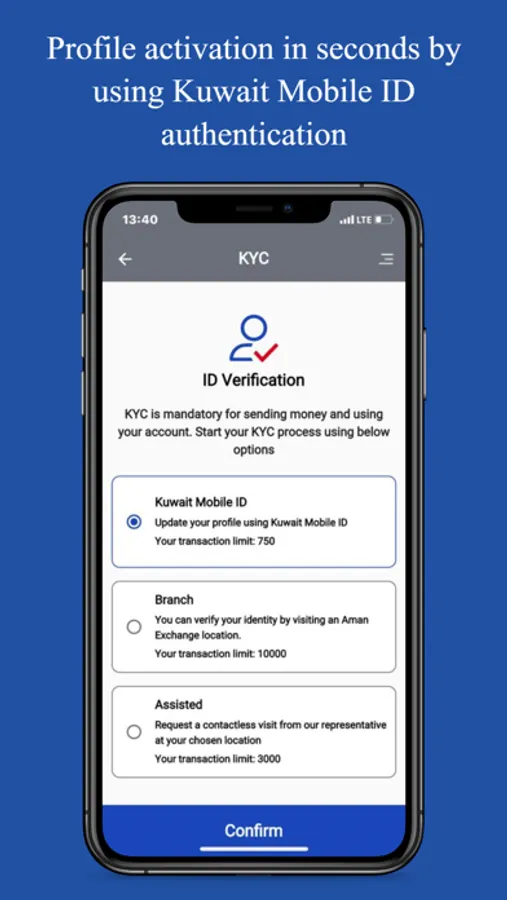 Submit your Registration details on the Aman Online website or on Aman Mobile application. Customers can do ID verification through Kuwait Mobile ID app or visit any of Aman branch to complete ID verification.
