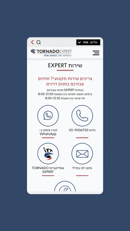 אפליקצית טורנדו המיועדת לטכנאי מיזוג אוויר ומתקיני מזגני טורנדו