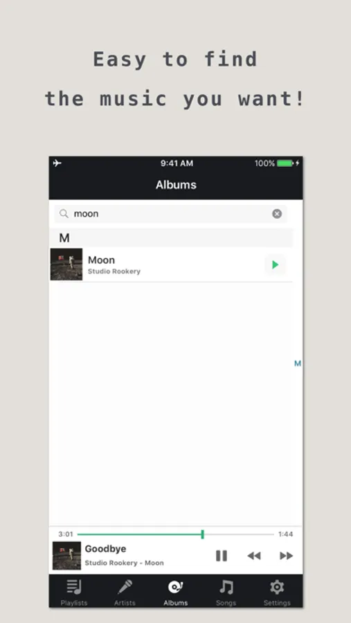 - Easy to find songs, artists and albums in both English and Japanese. (also in Hiragana)