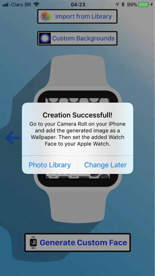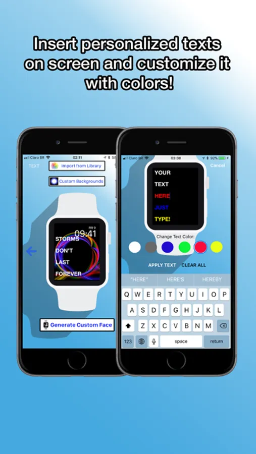 Import your photos, add custom colorful bezels, put your own texts and it's done! You can also choose from a selection of beautiful ready made backgrounds and inspirational texts to personalize your watch screen.