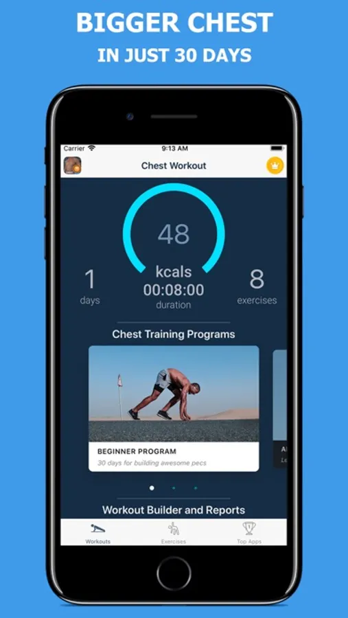 This app has transformed the physiques of thousands of people around the world. We have developed highly effective training plans from the most experienced trainers, which don't require any gym or equipment. All you need to do is complete the chest workout exercises from Day 1 to Day 30.