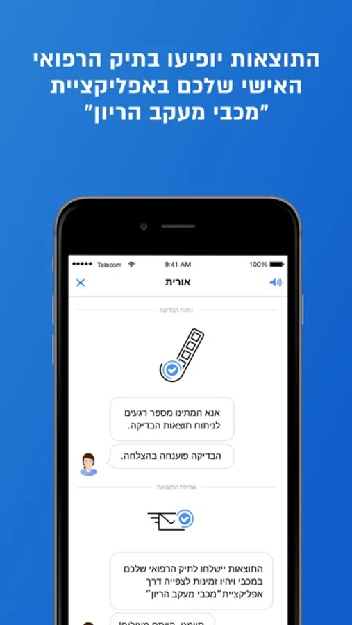אתם מבצעים את בדיקת השתן בעצמכם, באינטימיות הביתית, סורקים את מקלון הבדיקה ומקבלים את התוצאות תוך דקות למכשיר הנייד שלכם. הבדיקה זהה בדיוק לזו שמתבצעת במעבדה, ומנתחת את אותם הפרמטרים הקליניים.