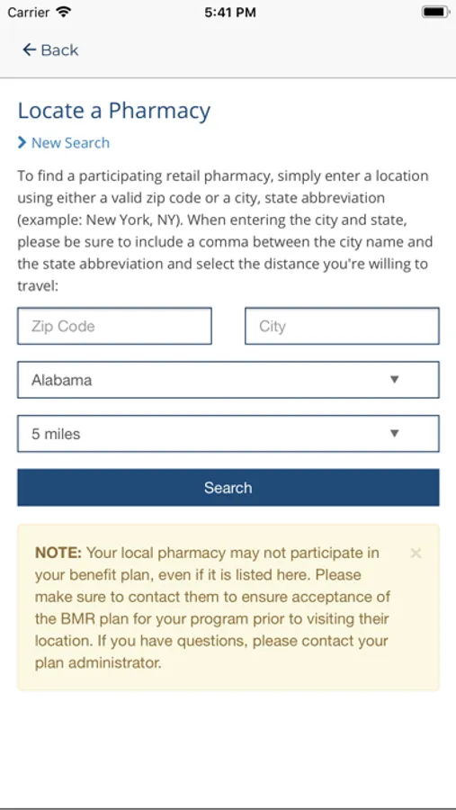 Search for pharmacies by location.
