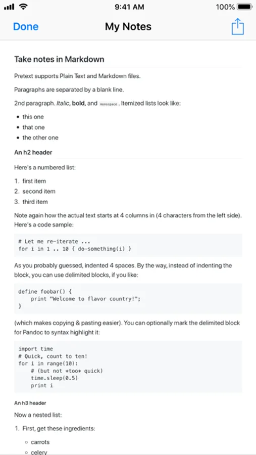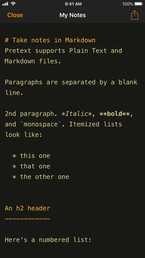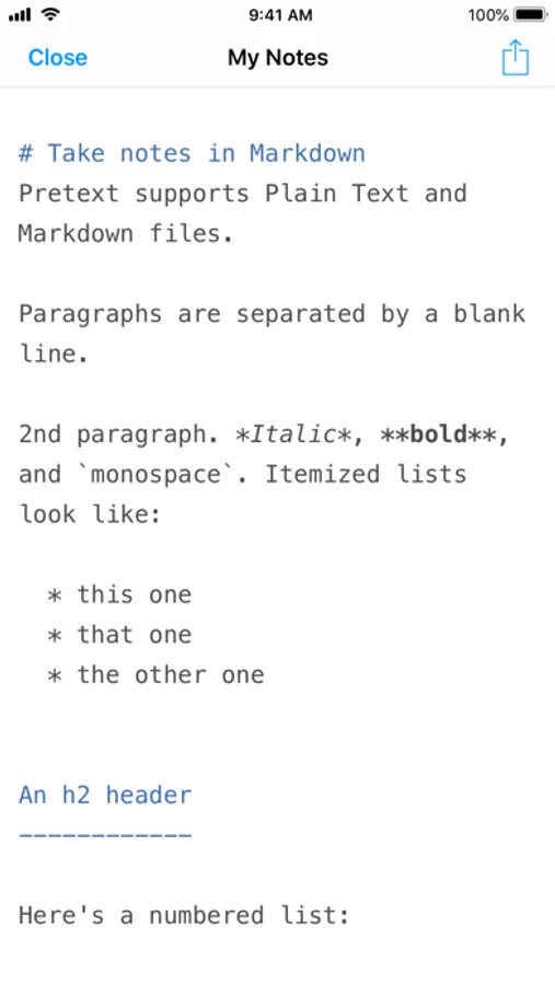 Pretext works great on all your iOS devices. Thanks to comprehensive keyboard shortcuts, Pretext works especially well with iPad Pro and Smart Keyboard.