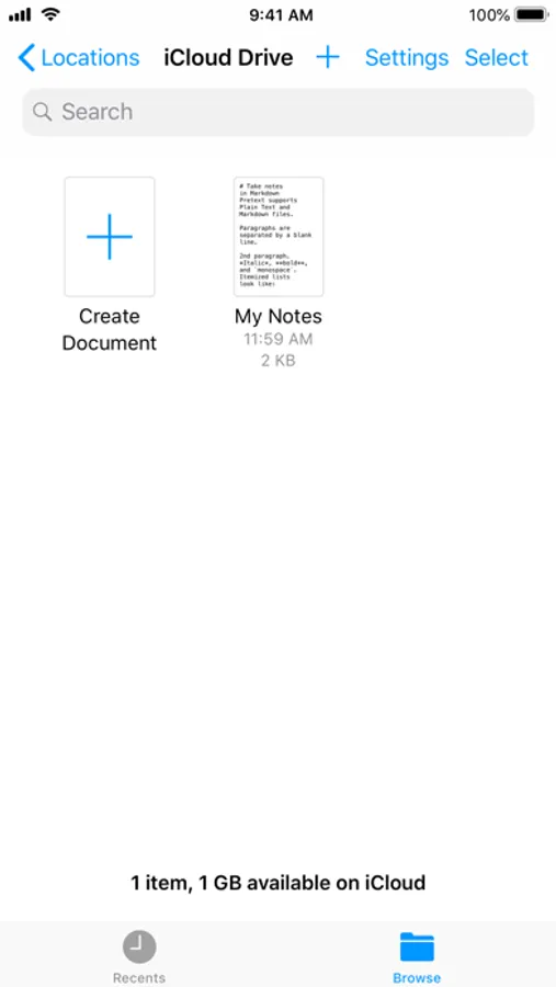 Pretext is designed to work seamlessly with iCloud Drive and other file providers. This means you can open files directly from your Files app, and any changes are saved right back, available to use on other devices and in other applications. No clunky import and export steps just to make an edit – instead, you keep full control of your files.