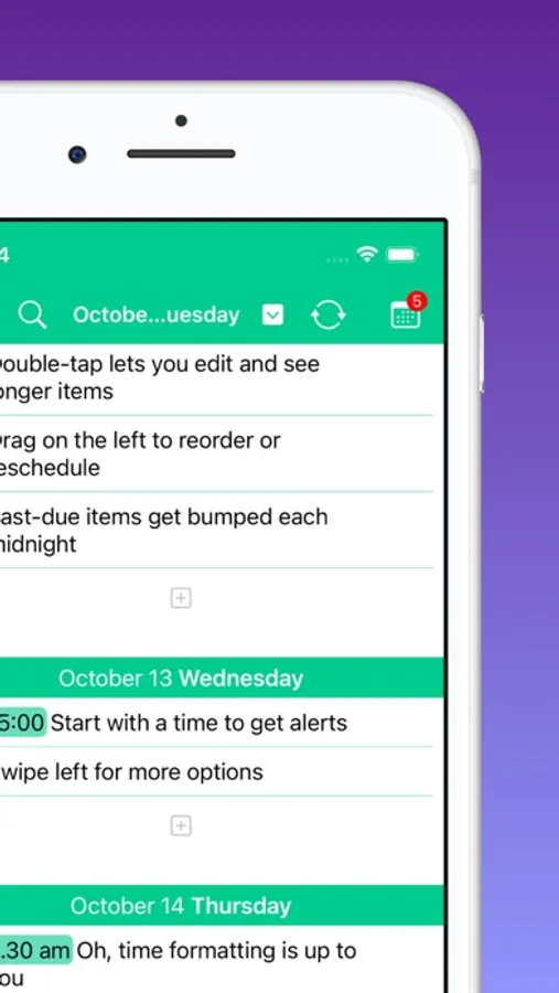 Just type up whatever you need to do, drag to reschedule, and set alerts by simply typing the time – all information is contained in good old text. Ease of use and the lack of cruft is what makes Supreme, quite possibly, the most productive todo list ever.