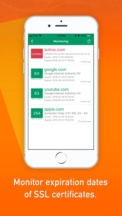 While many SSL issuers currently do notify the hosts, this notification is usually sent out through an e‑mail. With the number of promotional e-mails these issuers send out periodically, it is easy to oversee or ignore the important e‑mails with SSL expiry notice, resulting in expiry of the SSL. To prevent this, using this app as a backup for receiving SSL-expiry notification is highly recommended.