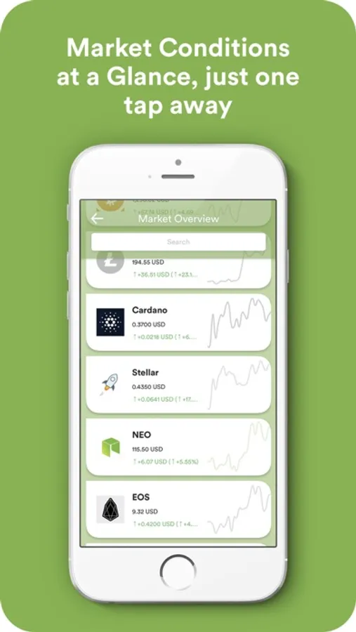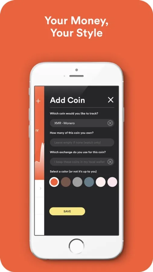 The app allows the user to keep track of their crypto holdings held on virtually any exchange, monitor coin prices, view trends and keep up to date with market movements. All this in a colorful design, never seen before in a finance app.