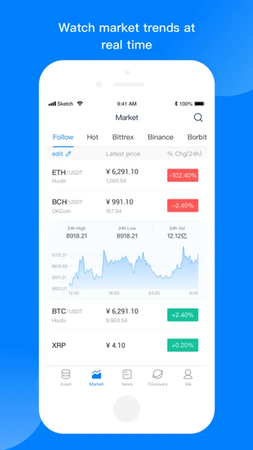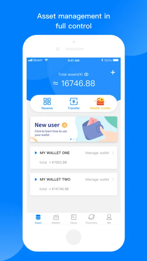 Supports BTC, ETH and Ethereum ERC 20 standard tokens at the same time, covering all mainstream currencies in one wallet.