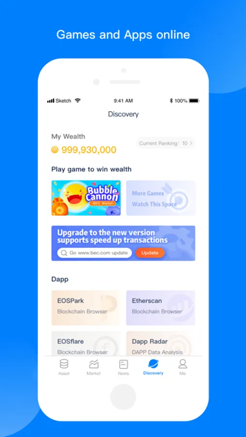 BEC Wallet is a decentralized digital cash wallet app, which supports the storage and transactions of BTC, ETH and most mainstream currencies at the same time. A variety of import methods are also supported, easy to operate while safe and reliable.