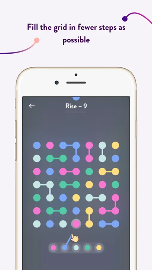 Drag colors from the palette to the grid and watch it spread to connected dots. Fill the whole puzzle in one color in fewer steps as possible.