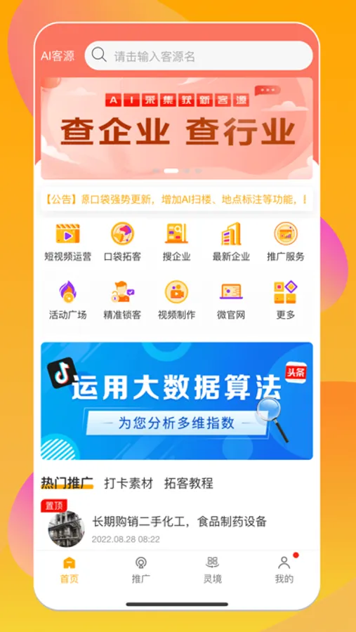 以记录浏览数据为核心,锁定精准客户资源,有针对性的提高业务质量,增加工作效率。另外整合了所有行业和多个信息门户,使软件里的数据更加细化、透明化。软件包括精准锁客、智能推广、引流宝典等实用功能,以信息化精细准确为目标,高效,便捷为己任,努力为大家创造更好更全的营销助手!