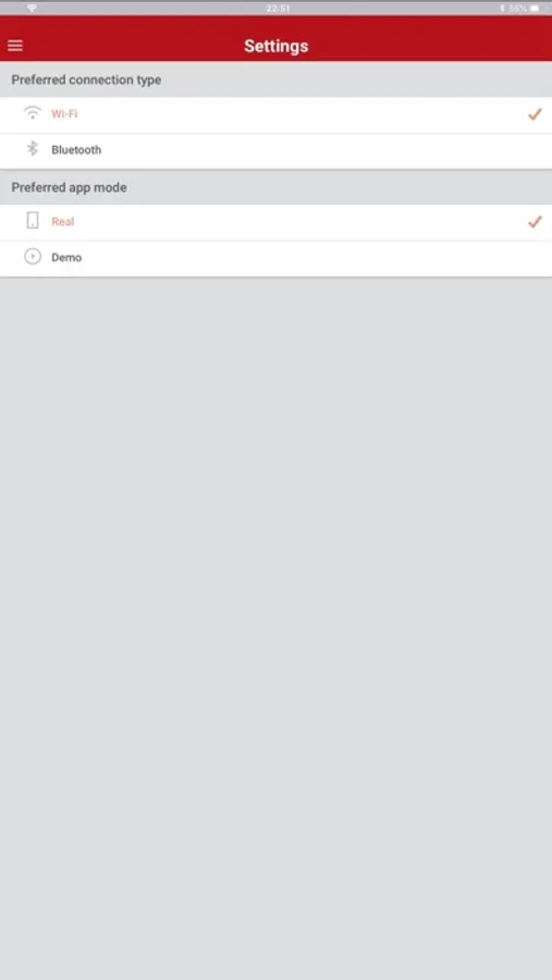 - Select the preferred connection type in application settings (default is Wi-Fi)