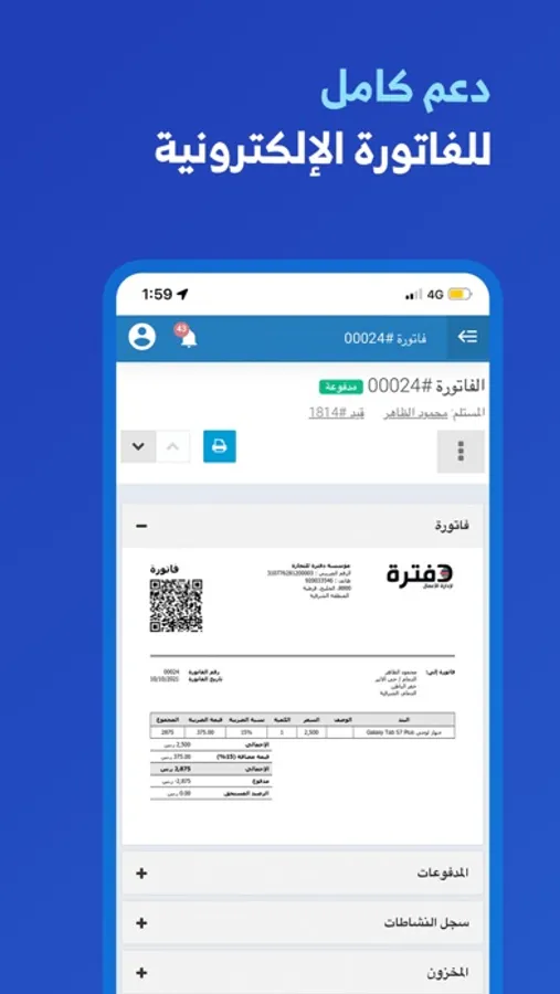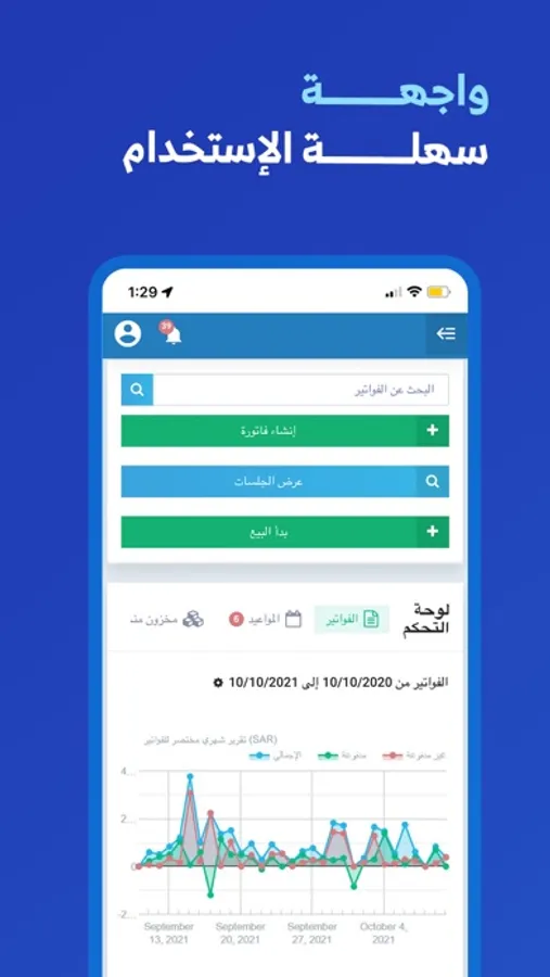 - Seamlessly register data with Daftra intuitive system, log in and track financial -transactions and update as you go.