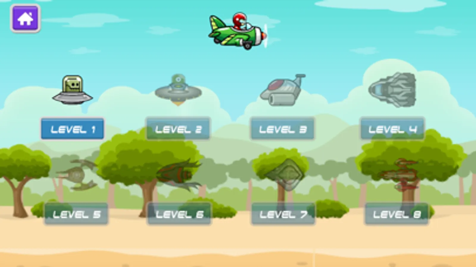 Go through the eight great levels to exterminate all the UFOs trying to invade the land.