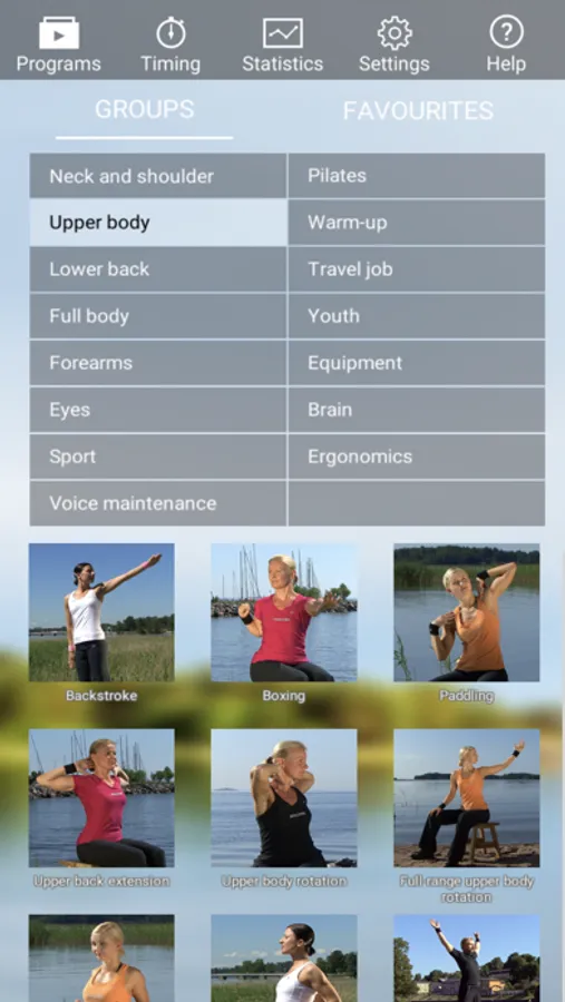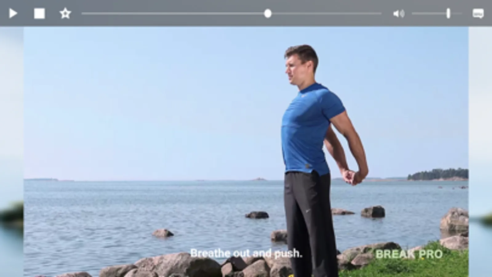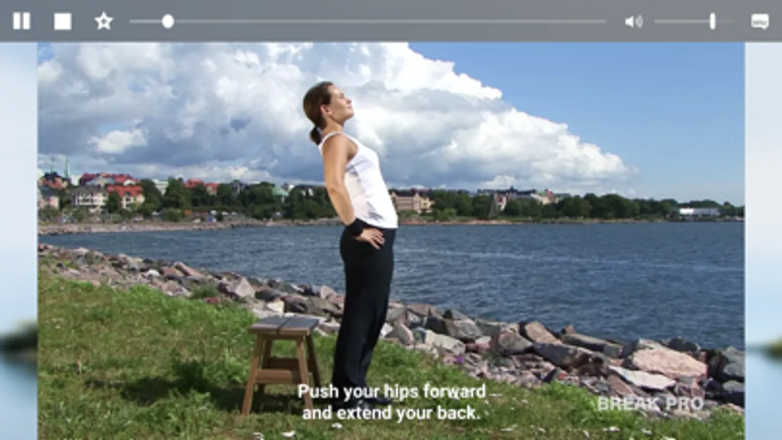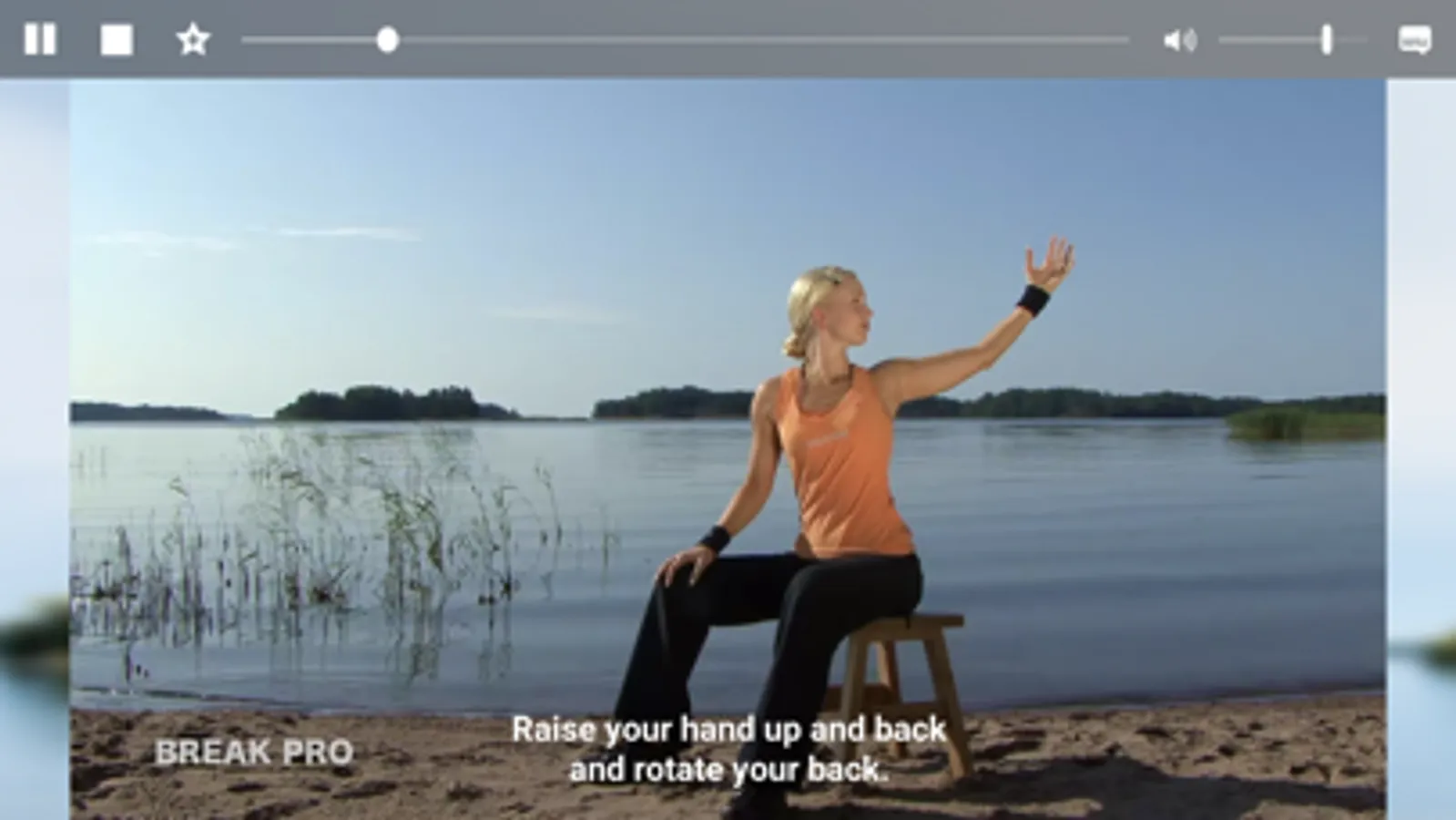 BREAK PRO offers effective, versatile and short break exercise videos shot in sunny coastal surroundings with individual timing. The program includes a variety of exercises for the whole body, including Pilates, ergonomics, mindfulness, voice care, sections designed for the youth and longer stretching exercises.
