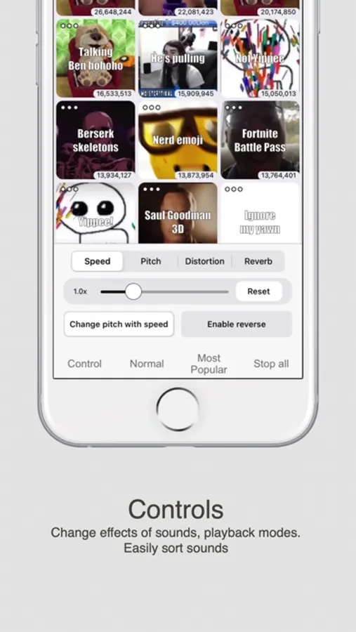 * Shake your device or tap on the 'Random sound' button to play a random sound.