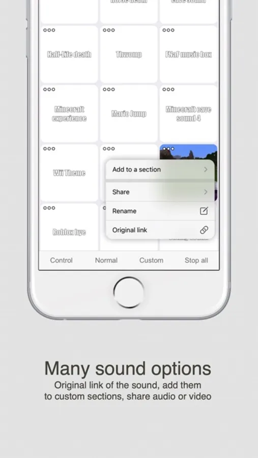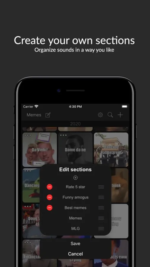 * Create your custom sections! Add, move, and organize sounds easily with your created sections.