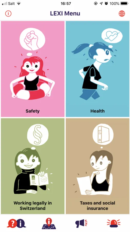 LEXI app provides information on health, safety, work, taxes and social security issues. It is available in the following languages: