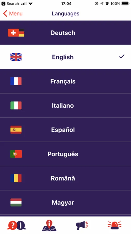 Deutsch, English, Français, Italiano, Español, Português, Română, Magyar, български, Polski, ไทย, slovenský