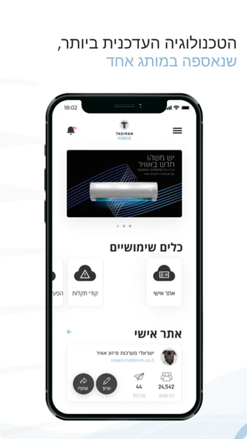 אפליקציה מקצועית למתקינים ולטכנאים אפליקציה יעודית למתקינים וטכנאים של חברת תדיראן - חטיבת המיזוג.