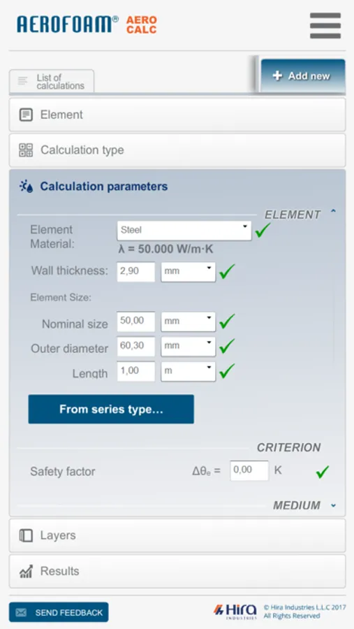 Aerofoam: thermal calculation software for professionals, consultants, contractors to find correct thickness of thermal insulation for all kind of pipelines, air ducts, and tanks/vessels. Easy way to control condensation, energy savings, freezing time and much more. Many possibilities for industrial calculation on different tanks shapes.