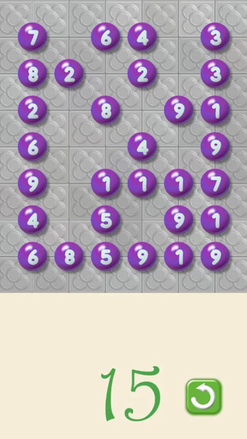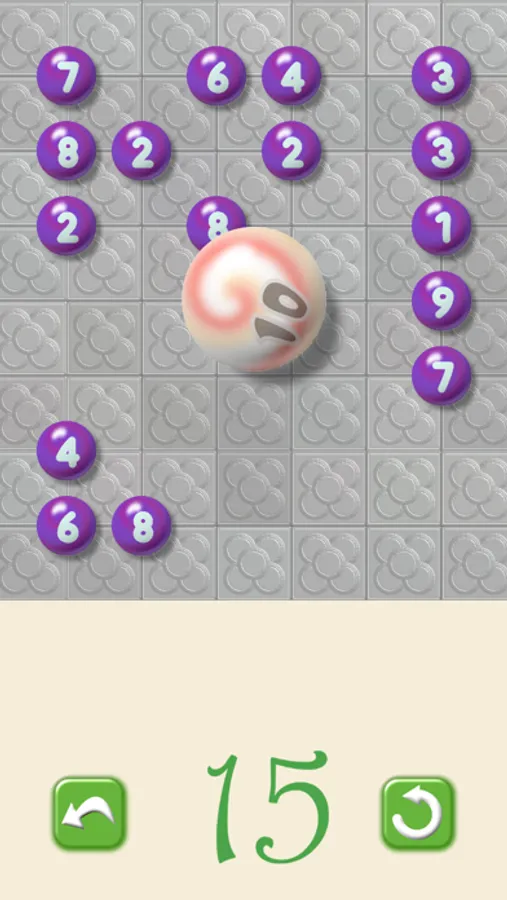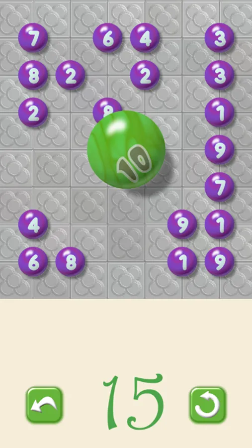 There are no instructions because the rules are natural and intuitive. 21 marbles - of colors and designs for all tastes - are won one by one. In every level, the recovered marbles - each representing the number 10 - break randomly into pairs of smaller marbles: either into a 9 and a 1, or an 8 and a 2, or a 7 and a 3, or a 6 and a 4, or two 5s. The marbles get positioned randomly on a board, and can be merged back together into 10s, by knocking together pairs that sum to 10. It is always possible to recover all 10s, but some thinking ahead is required. The "undo" button is always there to let you trace back your steps and find your mistakes. Learning to think ahead is not optional, and is the most important educational aspect of this game.