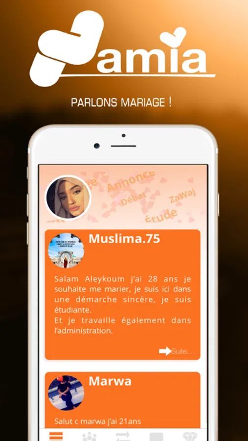 That's why we offer the application NaMia, an app that will allow you to put you in contact with brothers / sisters who match you.